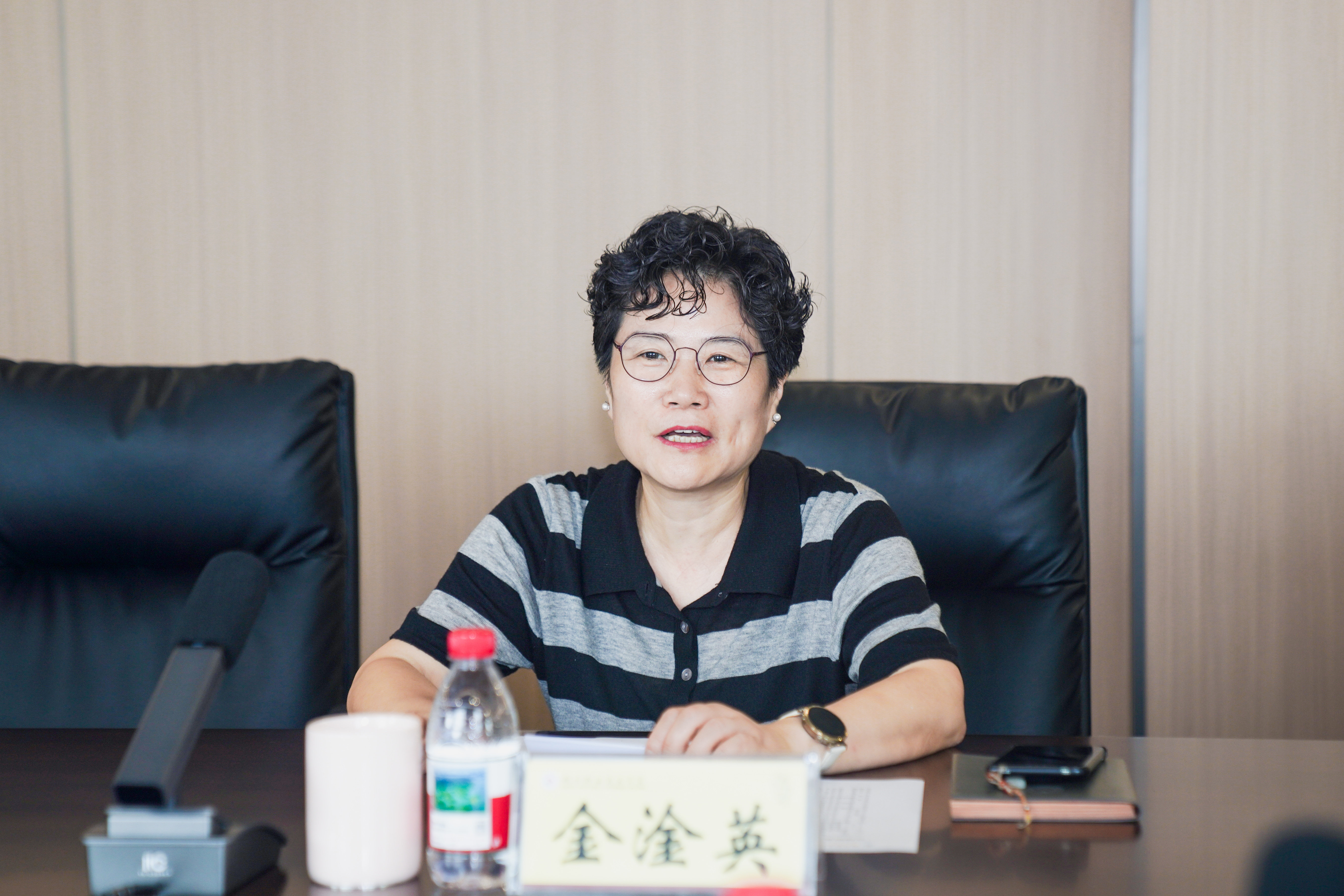 金淦英对李斌一行来校调研表示欢迎,并介绍了学校基本概况、办学成效和新校园规划建设总体情况。她指出,在长期的办学实践中,学校形成了做强高职教育、做大开放教育、做特农民教育、做活社区教育的“四位一体”办学特色,现有的36个招生专业与我市“1366”特色现代化产业体系高度匹配,近年来为社会输送了大量高技能人才,在湖州农民学院办学十五周年的基础上,更迭代成立全国首家地市级青年入乡发展学院。接下来,学校将以新校园的启用为契机,用足用好一流新校园硬件的溢出效应,撬动、助推关键办学能力提升,强化内涵式建设,全面开启高质量跨越式发展新征程。