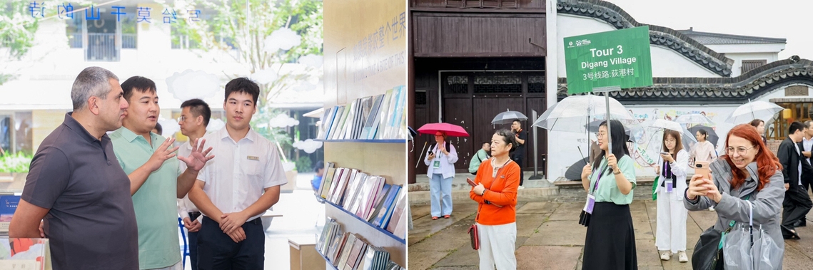 10 月 18 日联合国旅游组织考察团在南浔古镇和入选2025年“最佳旅游乡村”荻港的专项考察中,高级导游刘霜老师聚焦考察点位的文化内涵与旅游价值,英文讲解条理清晰、内容详实,引导考察团深入了解了当地的历史文化传承与活化利用,充分发挥了金牌导游深厚的外语讲解实力。